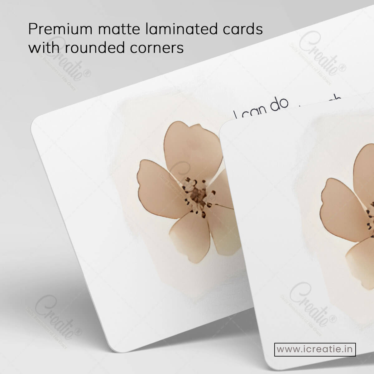 Printed on premium artboard paper with a smooth matte laminated finish and rounded corners, each card carries a soft, minimal design that keeps the focus on the message. Simple to hold, easy to share, and meaningful to keep close.