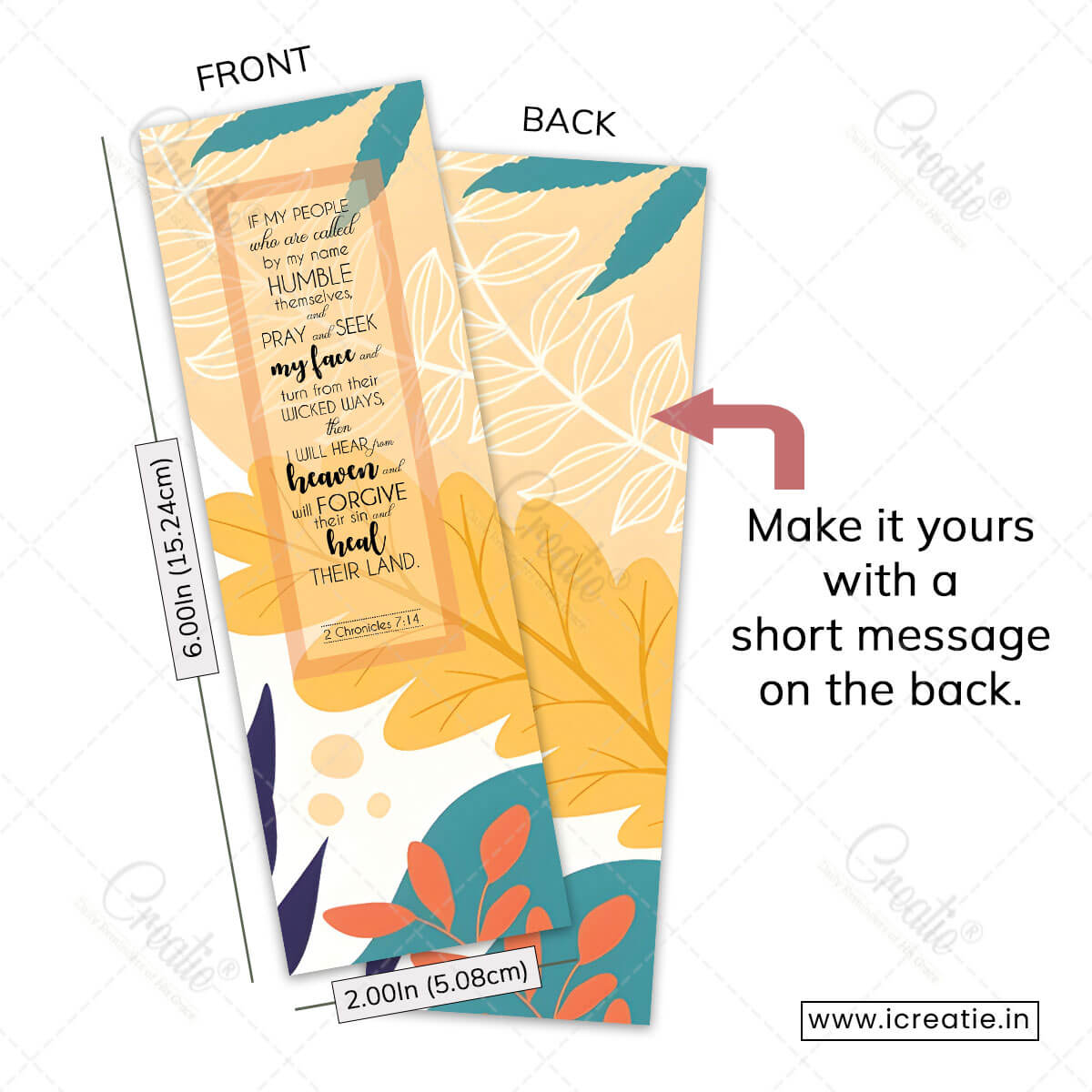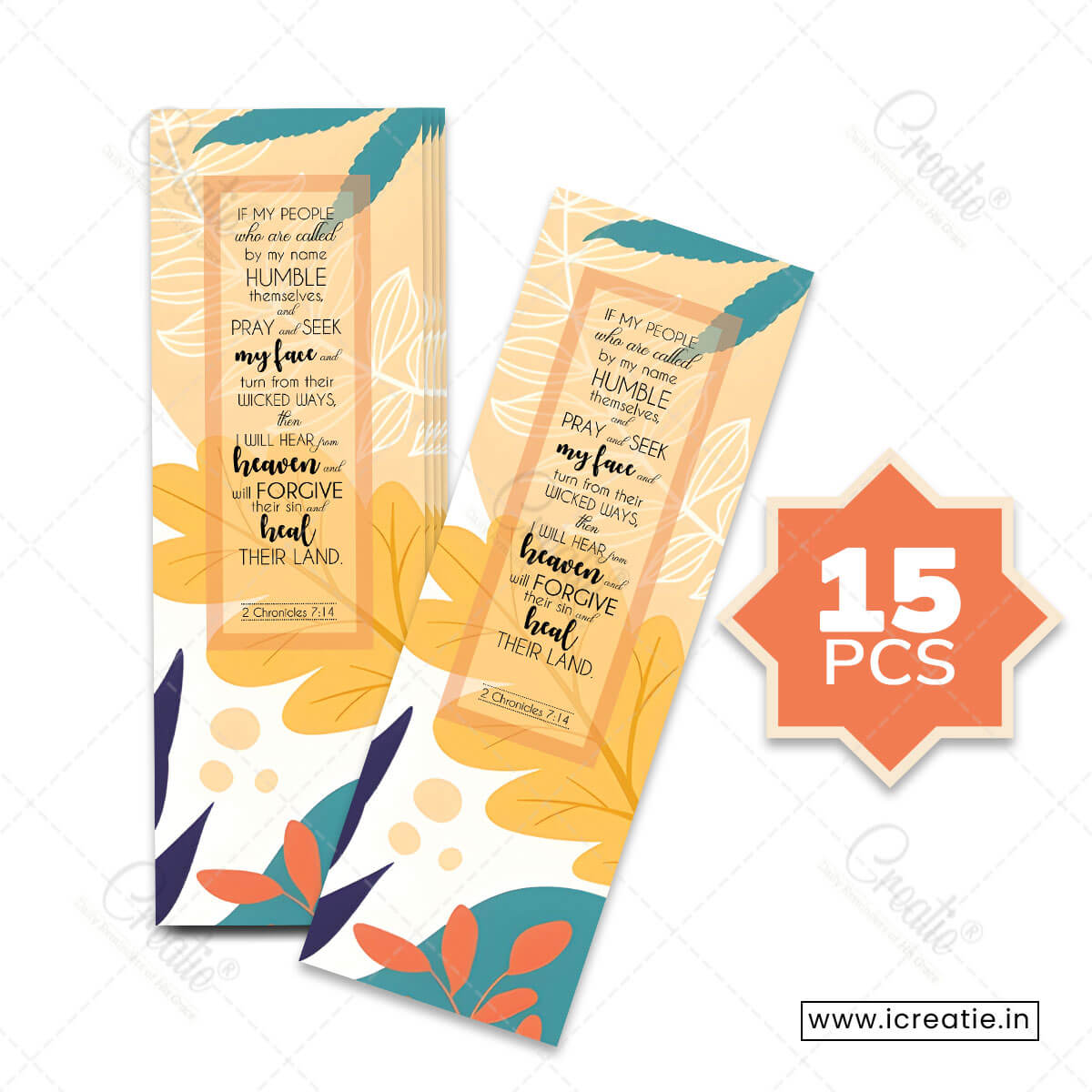 Yes! This prayer Christian bookmark India is PERFECT for India’s national prayer initiatives, Global Day of Prayer participation, and movements crying out for spiritual awakening across the nation. The verse specifically promises that when God’s people humble themselves and pray, He will heal “their land” – making it profoundly relevant for praying for India’s spiritual, social, and moral healing. Each pack includes 15 bookmarks – ideal for prayer event distribution and mobilizing intercessors.