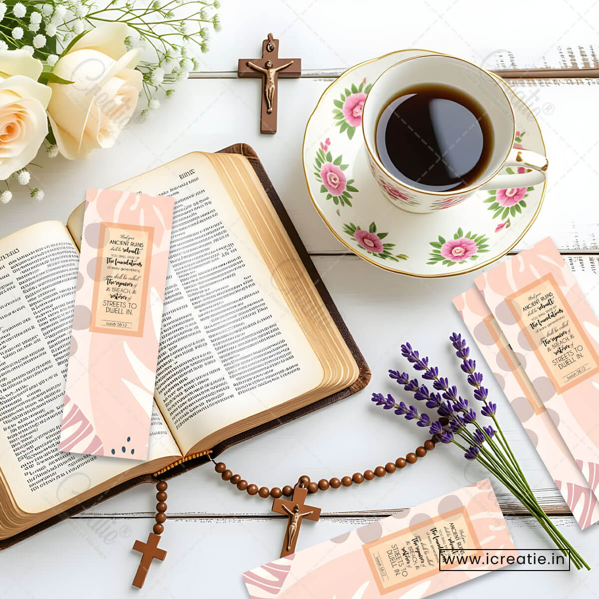 Yes! Isaiah 58:12’s promise of rebuilding ancient ruins and restoring streets with dwellings speaks powerfully to those rebuilding lives after addiction devastation. This restoration Christian bookmark India reminds them they’re not just “fixing themselves” but partnering with God in sacred restoration work – raising up foundations that were destroyed, repairing walls that collapsed, and creating a life that’s livable again. This restoration Christian bookmark India is perfect for recovery ministry participants, de-addiction center graduates, freedom ministry members, or anyone rebuilding after addiction’s ruins. It affirms their rebuilding journey has divine purpose.