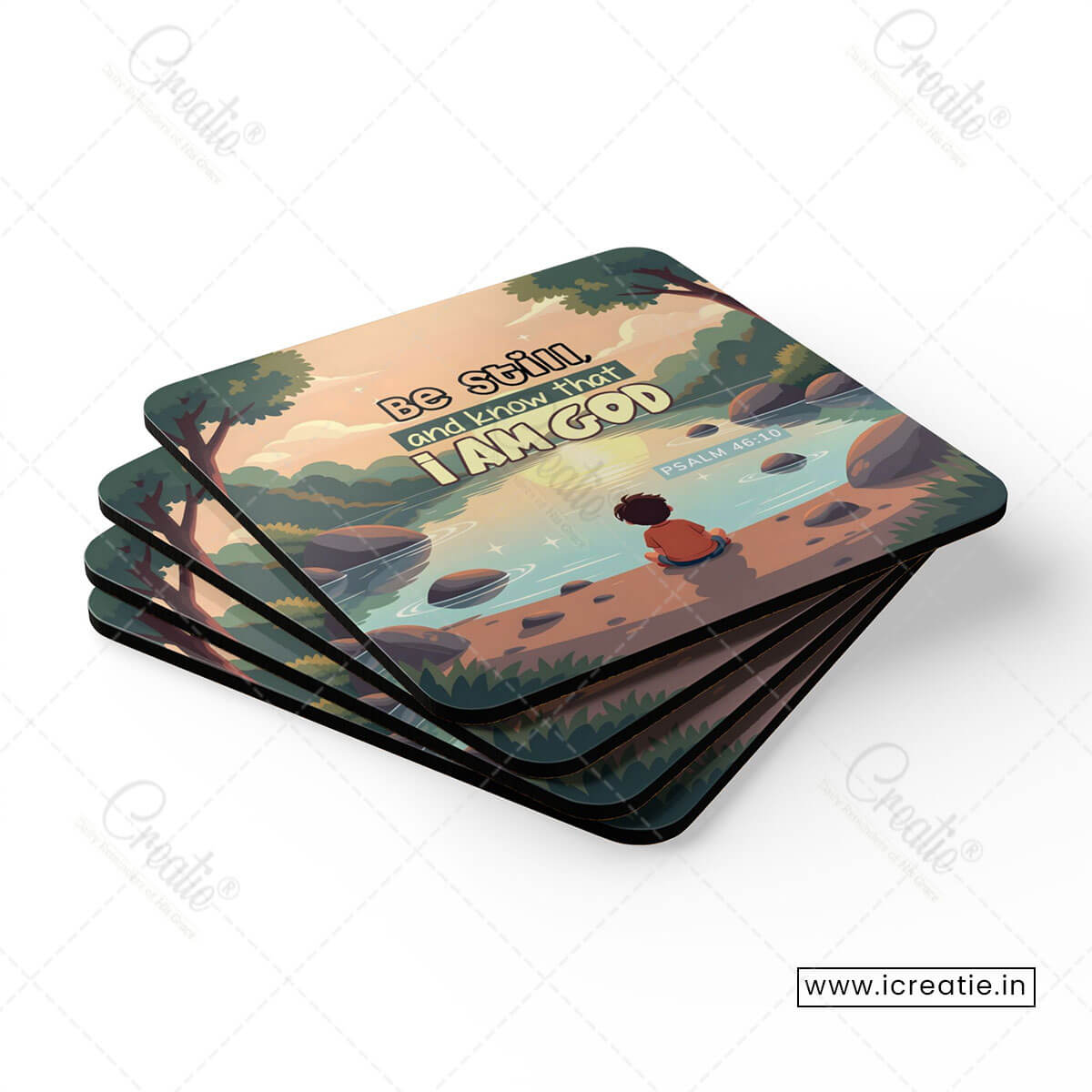 Be Still and Know Christian Coaster Set – Psalm 46:10 | Pack of 4
