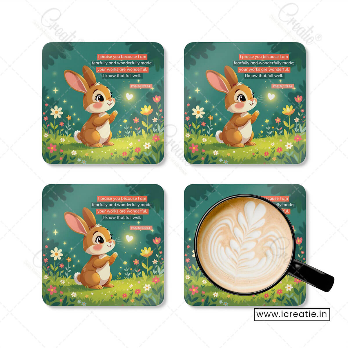 - Set of 4 Christian coasters inspired by Psalm 139:14