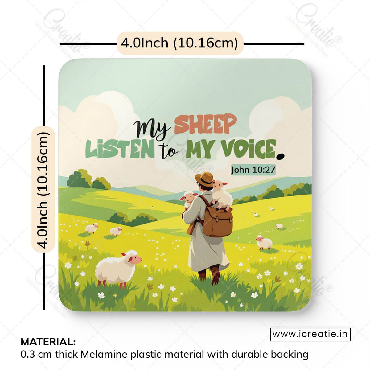 • Set of 4 Christian coasters featuring John 10:27