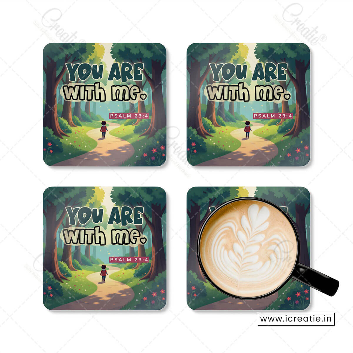 You Are With Me Christian Coaster Set – Psalm 23:4 | Pack of 4
