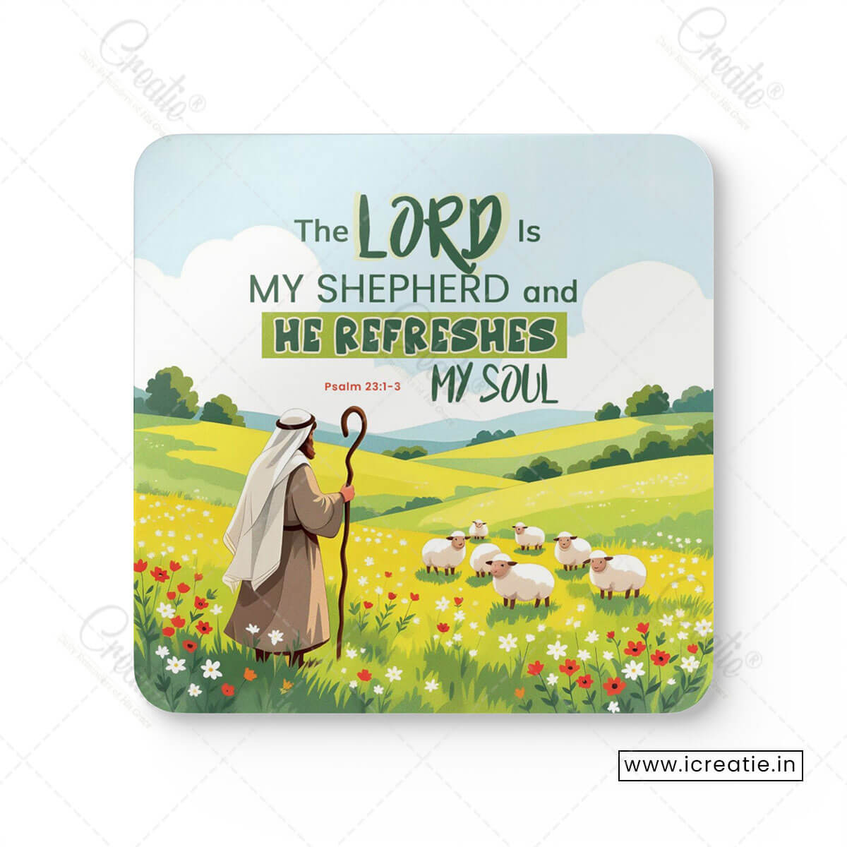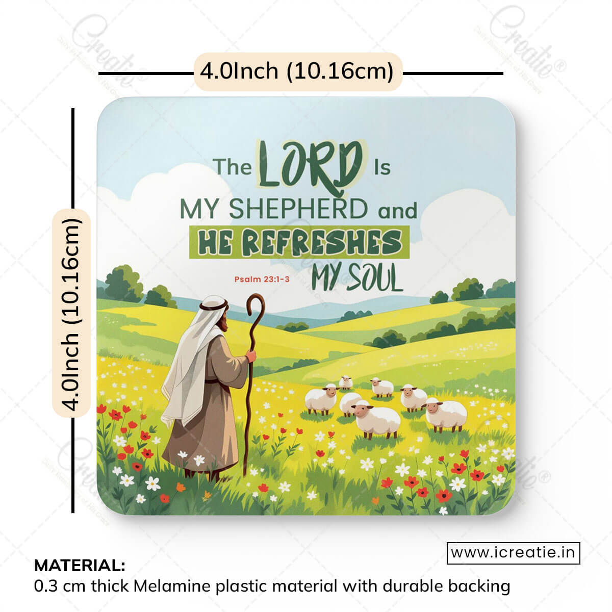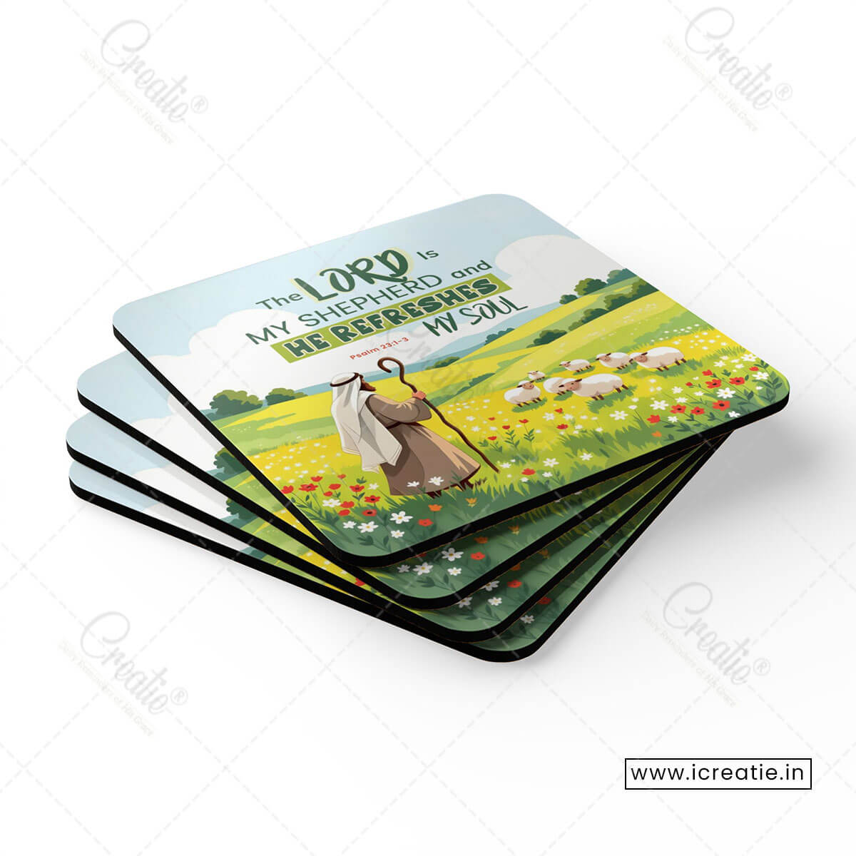 Peaceful Rest Christian Coaster Set – The Lord Is My Shepherd | Psalm 23:1–3 | Pack of 4