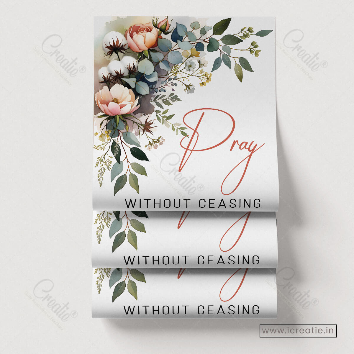 The gentle floral accents symbolize growth and life rooted in prayer, while the open space and modern typography create a sense of calm and focus. It reminds us that prayer is not limited to specific moments, but woven into the rhythm of everyday living.