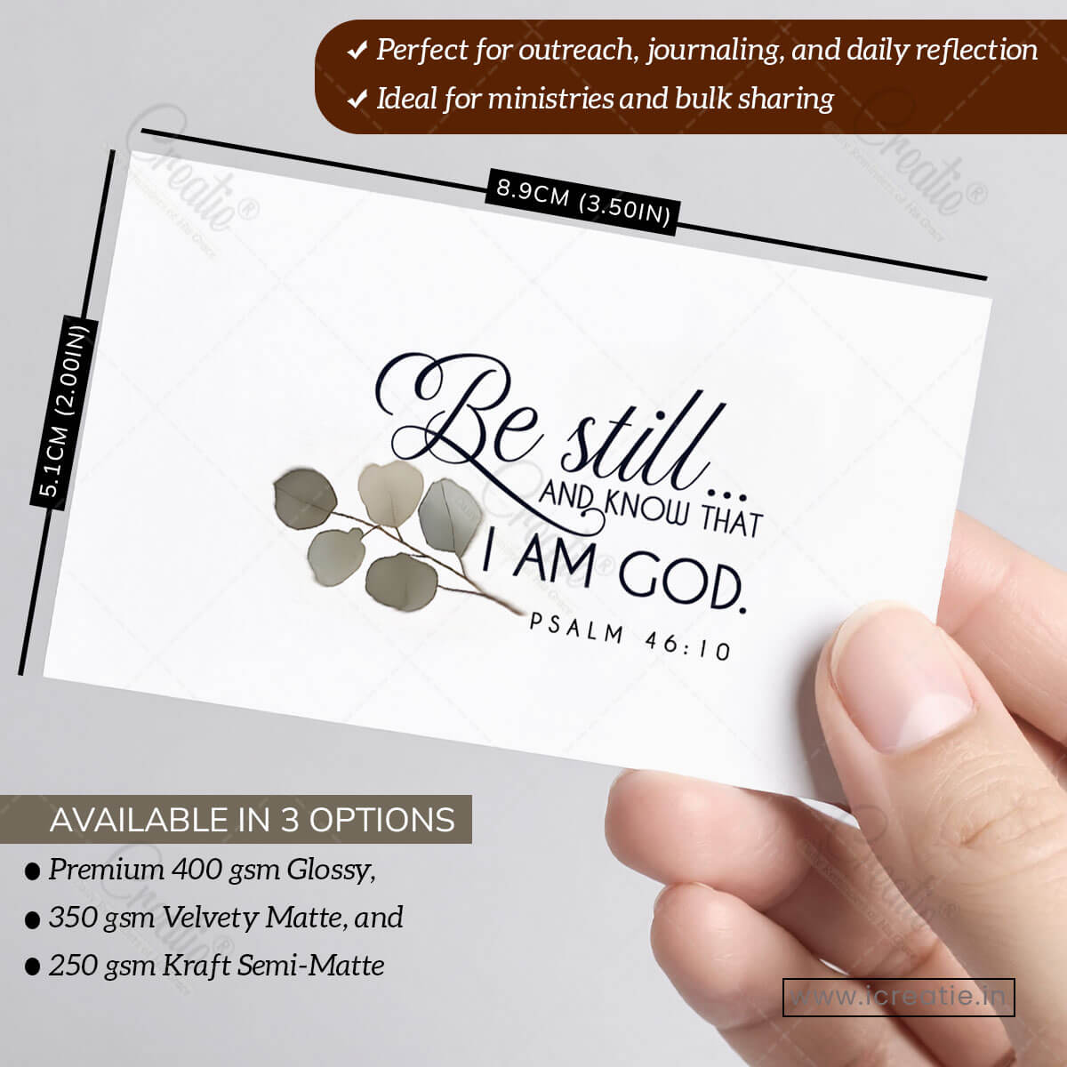 These cards are designed for printed personalization on the back side, making them ideal for bulk sharing and ministry use.