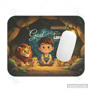 This mouse pad brings that message to life through a striking yet tender illustration: a small boy standing firm with his bow, while a mighty protector stands behind him. The image speaks quietly but clearly — we may feel small at times, but we are never standing alone. God’s presence goes before us, surrounding us with strength and protection.