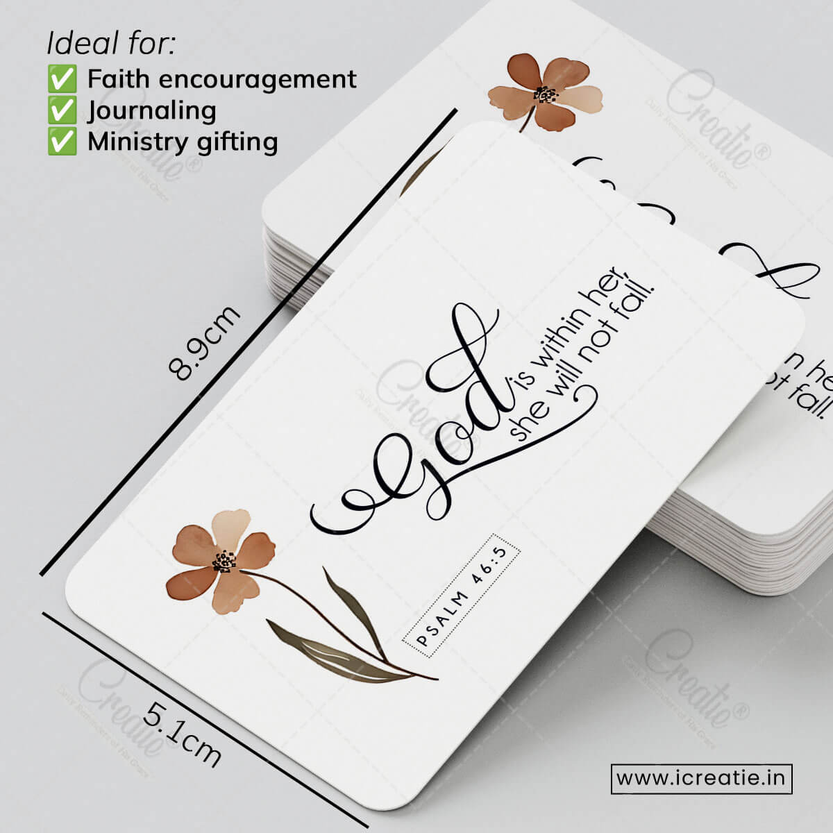 Printed on premium artboard paper with a smooth matte laminated finish and softly rounded corners, each card feels gentle in the hand yet strong in meaning. The minimalist floral design keeps the focus on the Scripture, making it easy to carry, share, or gift.